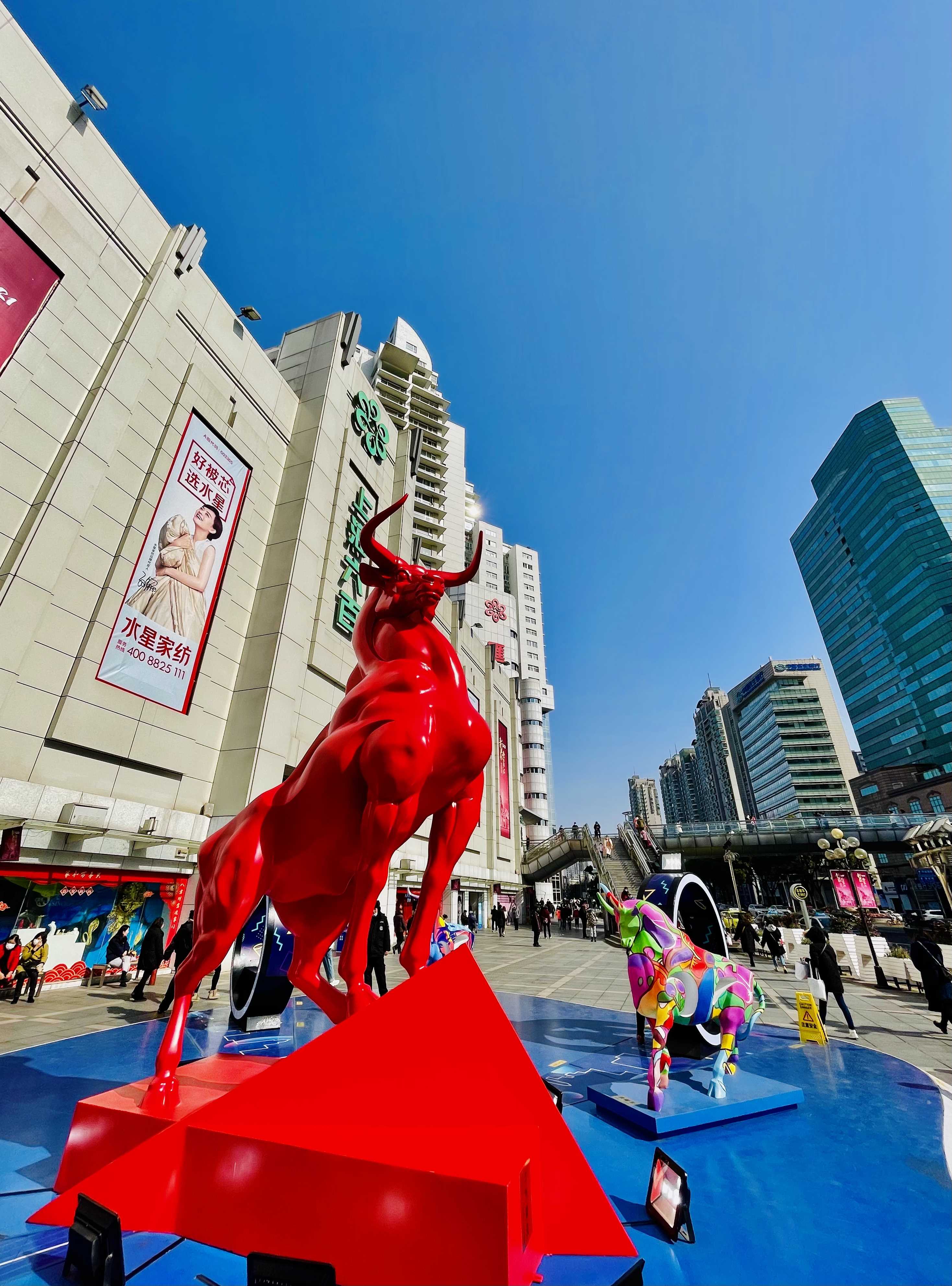 五牛齐聚徐家汇 送福添喜过大年